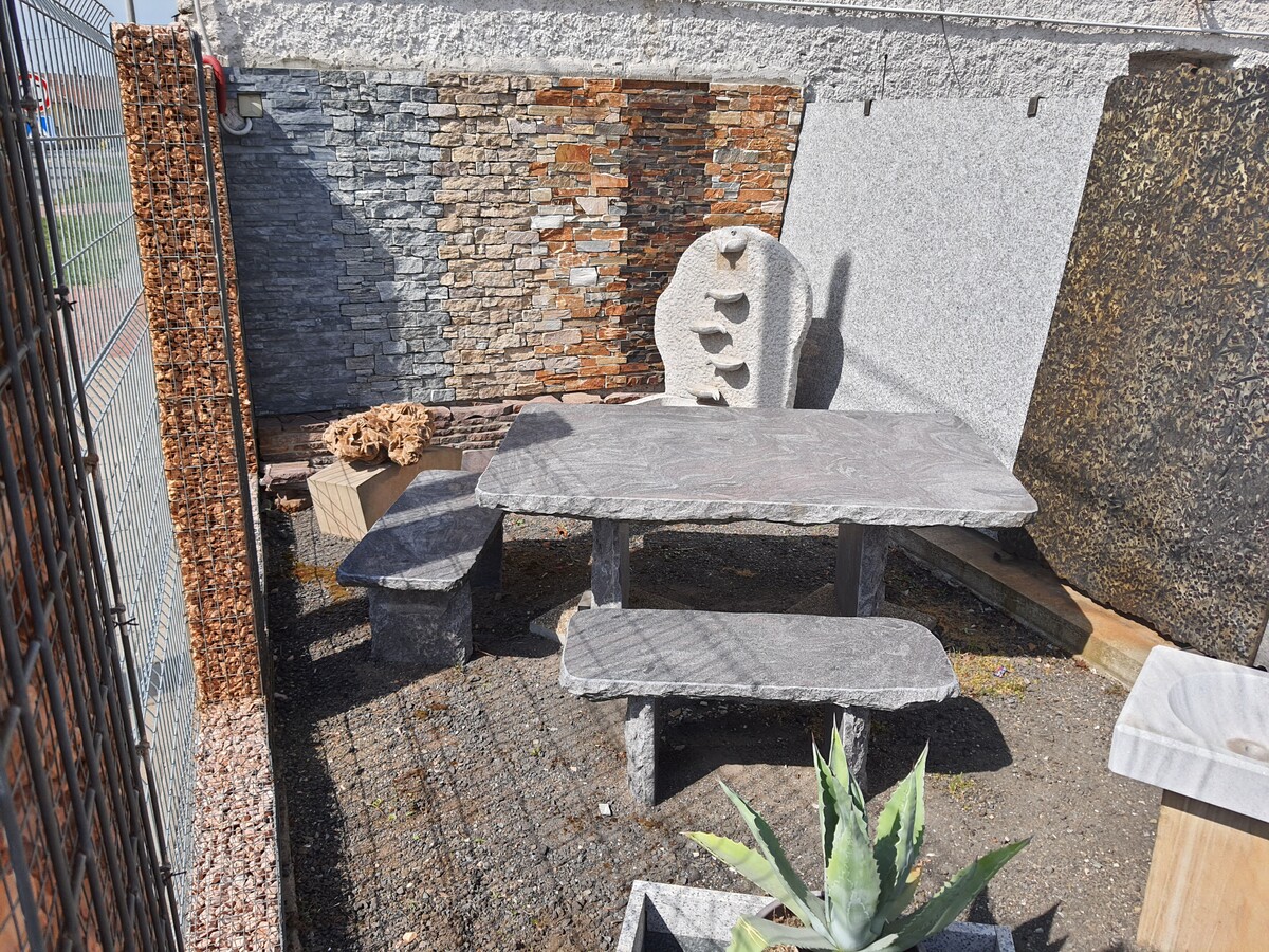 Masivní žulový stůl 150x70 cm včetně dvou lavic.